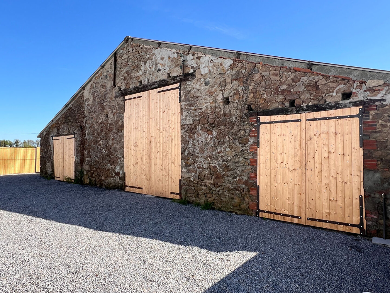 Une grange de 110 m² avec toiture récente et portails en bois neufs, peut permettre du stockage ou peut servir à une activité professionnelle (ne peut pas être transformée en habitation).