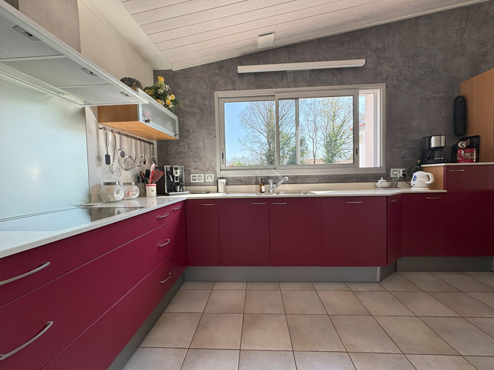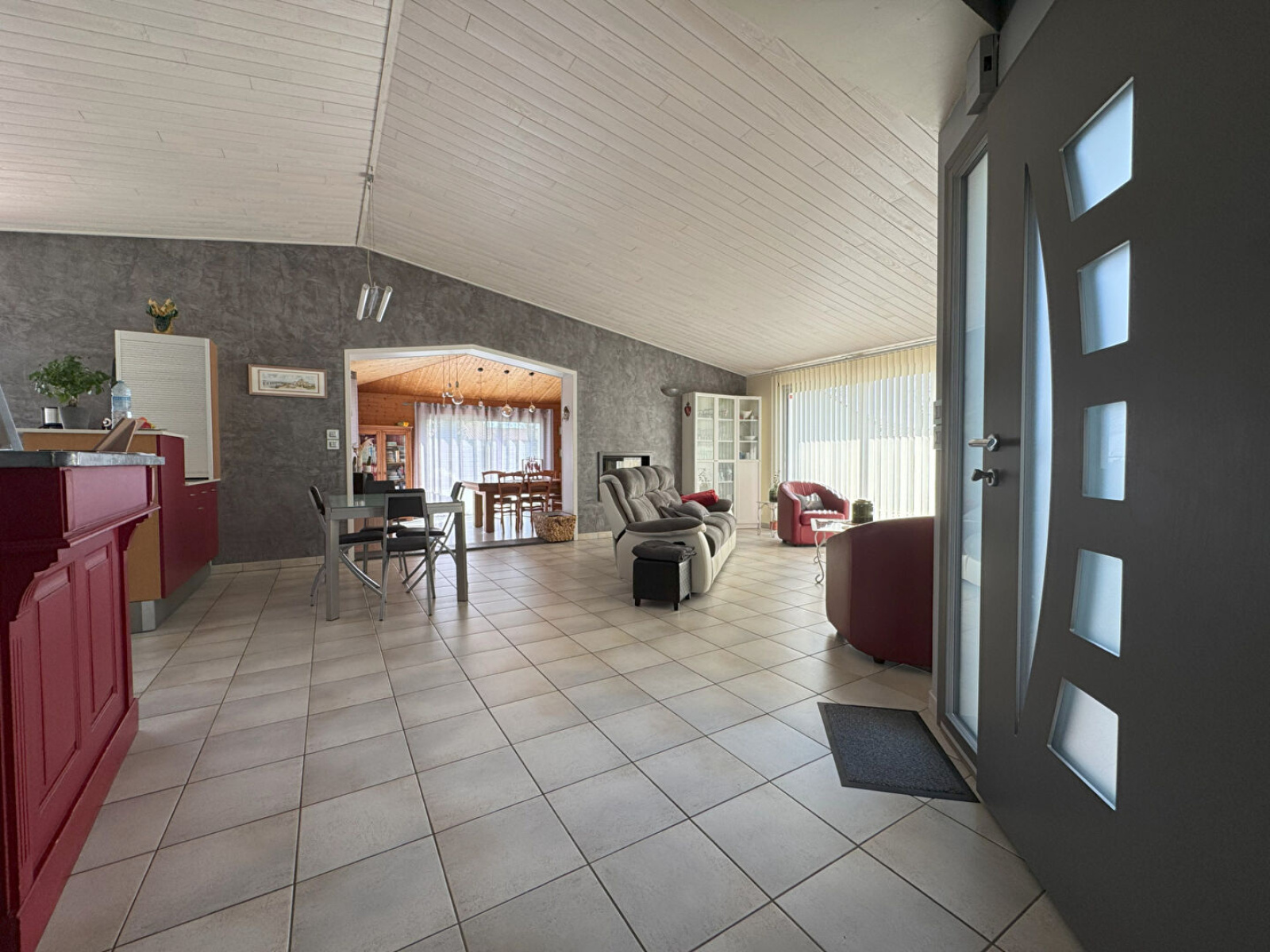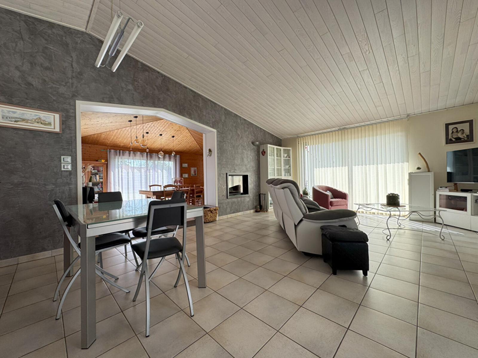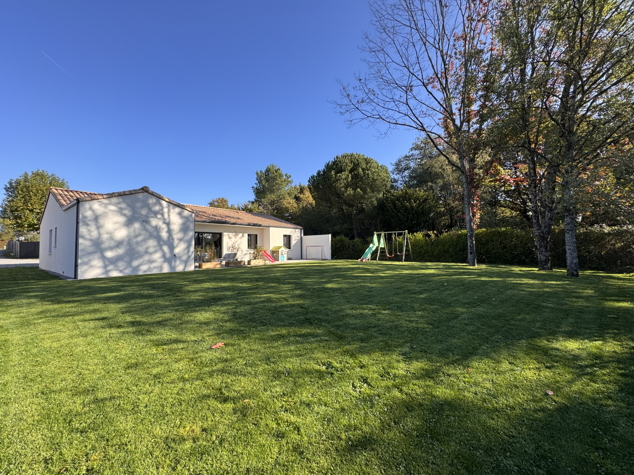 Proximité immédiate des collèges et lycée, maison de plain-pied fonctionnelle offrant 150 m² habitable. Elle se compose d'une entrée donnant sur une grande pièce de vie de 45 m², lumineuse, avec sa cheminée insert et son espace cuisine aménagée et équipée, une salle à manger de 26,7 m² avec des baies donnant sur une terrasse et sur le jardin, 4 chambres, un bureau, une grande salle d'eau, un wc, une lingerie.