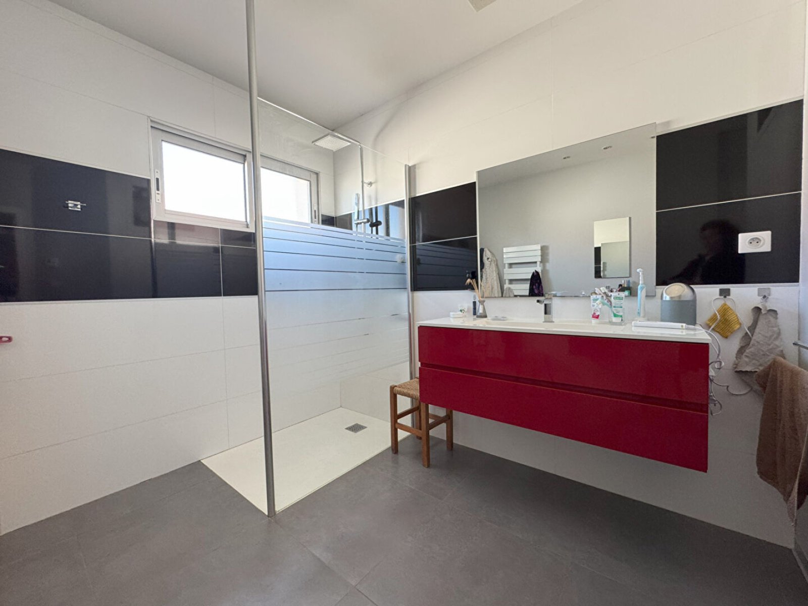 Détails techniques : chauffage au sol PAC de 2022, ouvertures double vitrage et volets roulants électriques, VMC double flux, aspiration centralisée.
