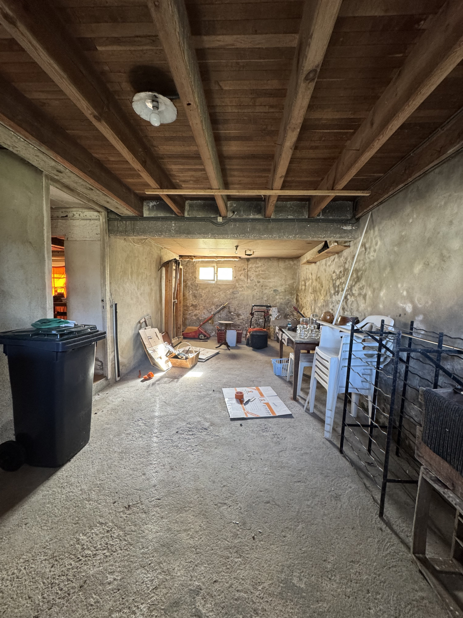 Au sous/ sol: un garage, une remise, une chaufferie, un débarras, une grande pièce de 43 m². Beua jardin de 700 m² clos et arboré. Elle est raccordée au gaz de ville, au tout à l'égout et à l'eau du puits. Raccord eau de ville en bordure de voie.