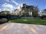 Jardin clos et sans vis-à-vis de 750 m², avec terrasse carrelée, le tout exposé Sud-Ouest.