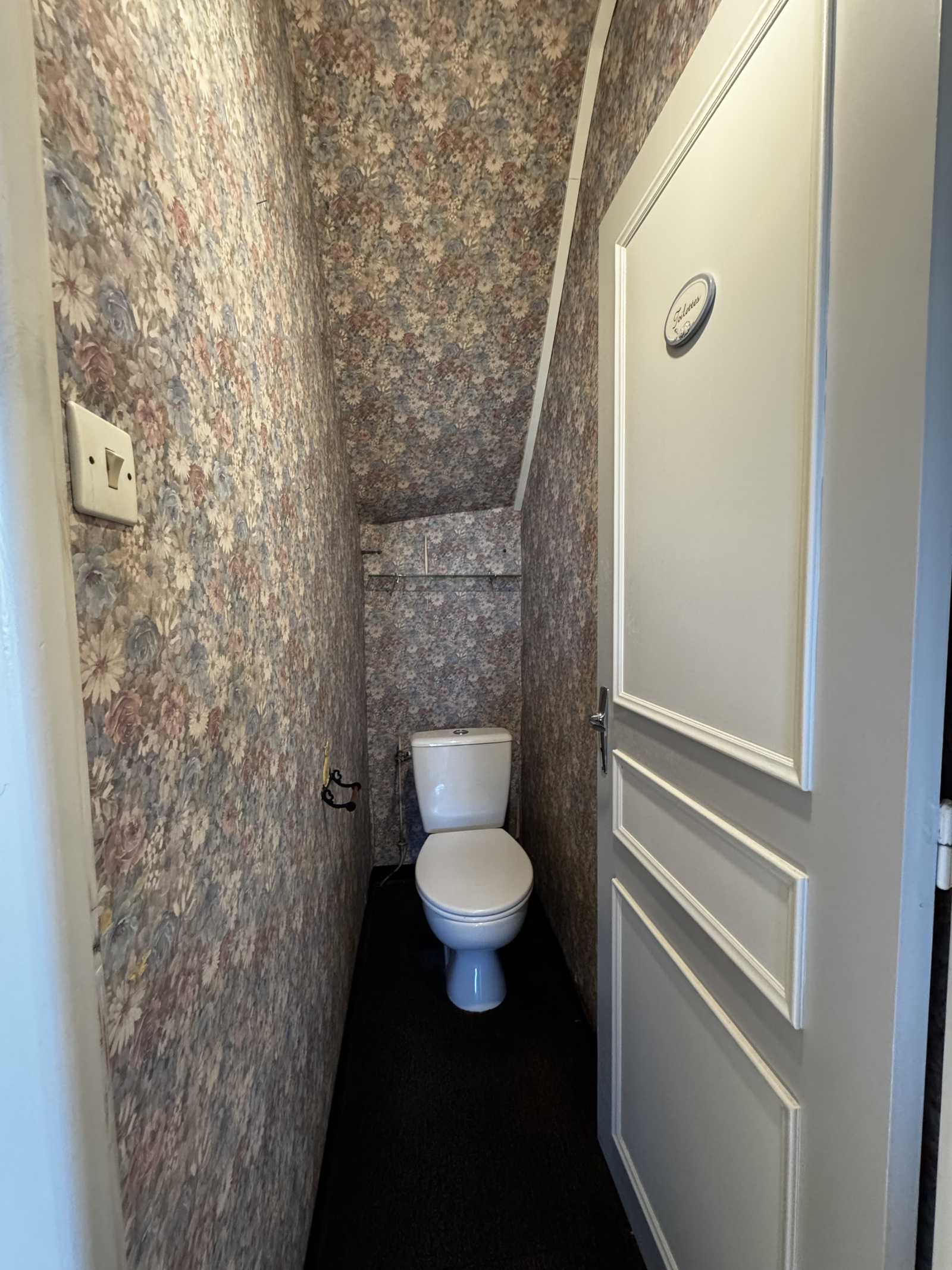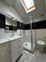 A l'étage : un palier avec placards qui dessert une SDE rénovée récemment avec un wc sanibroyeur, et 2 chambres.