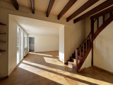 Elle se compose en rdc : d'une entrée, wc, une chambre ou un bureau, un salon-séjour lumineux avec une cheminée insert et une cuisine.
