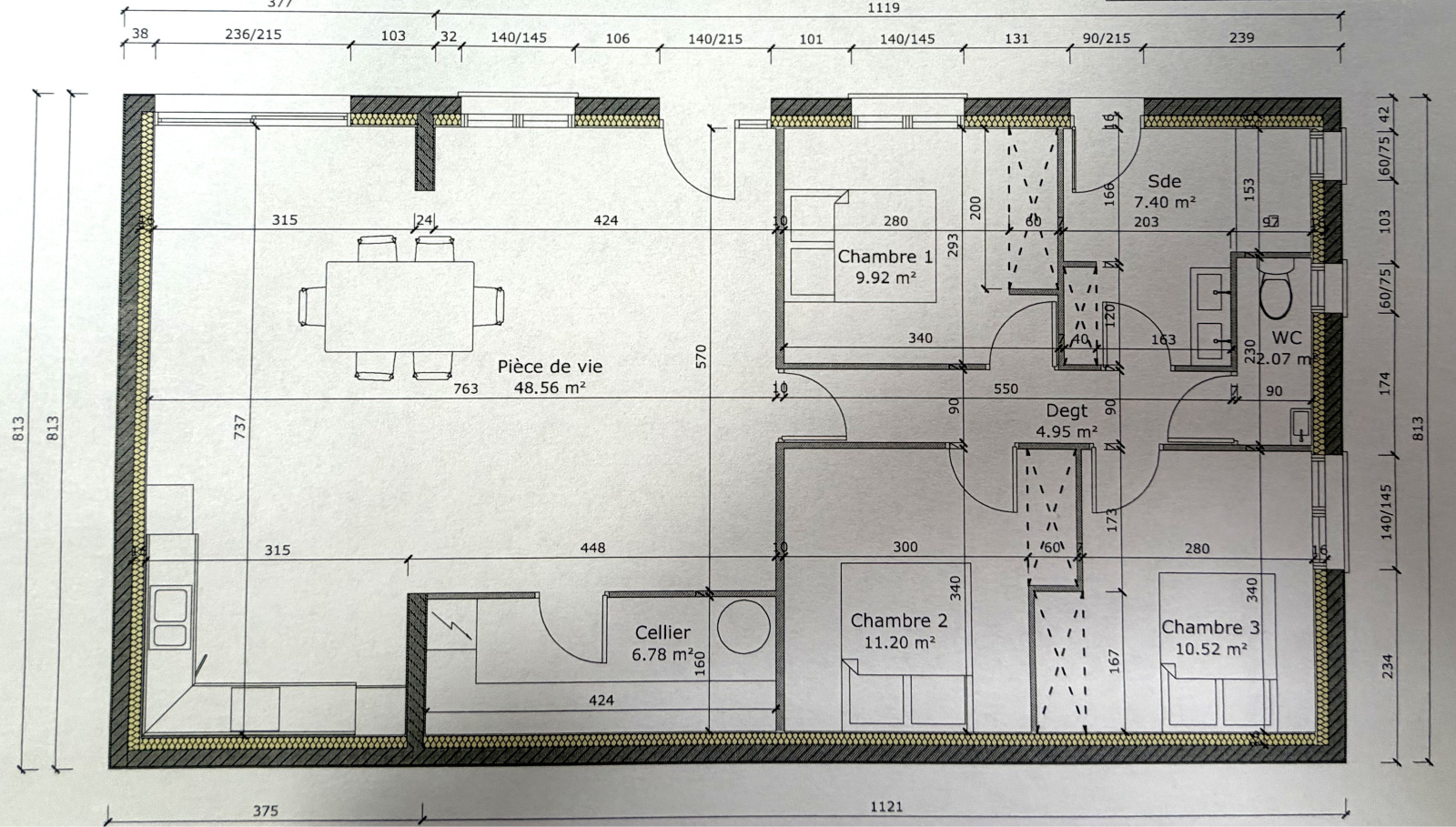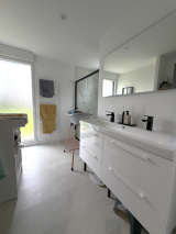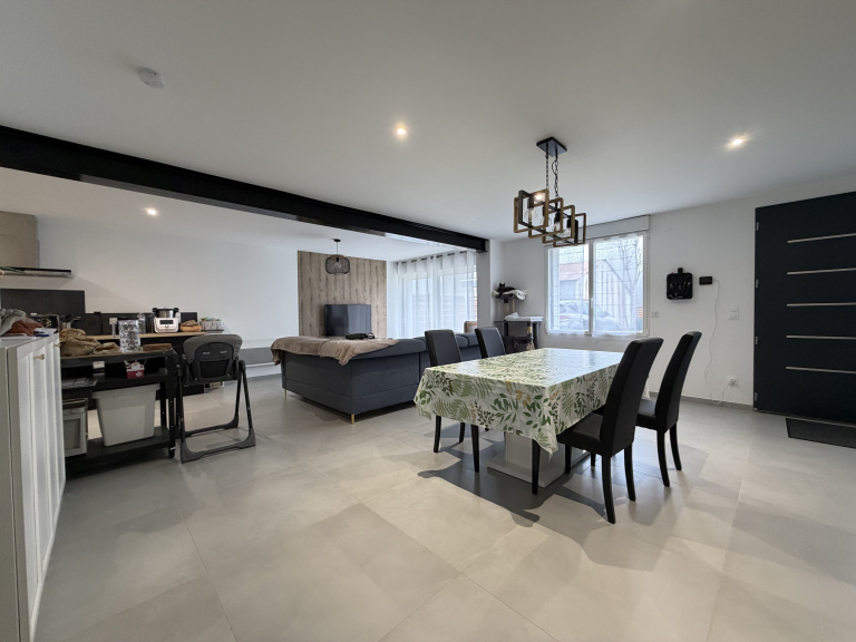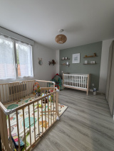 Elle offre: une grande pièce de vie lumineuse de 50 m² ; salon- séjour, cuisine aménagée et équipée (four, hotte, plaque induction et lave- vaisselle), un cellier, un couloir, 3 belles chambres dont une avec placard, une grande salle d'eau, un wc. Abri de jardin sur dalle, beau terrain entièrement clos de 676 m². Environnement tranquille. Maison équipée de la fibre, chauffage électrique, ouvertures PVC et ALU double vitrage et volets roulants électrqiues, toiture en bac acier, assainissement (micro station) neuve.