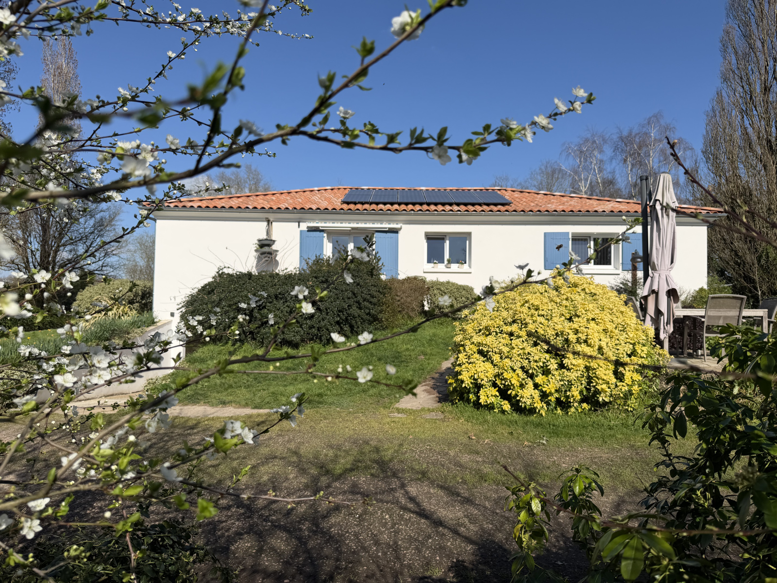 A l'extérieur: terrasse en sortie de cuisine, espace barbecue, potager...beau terrain clos et arboré de 2475m².