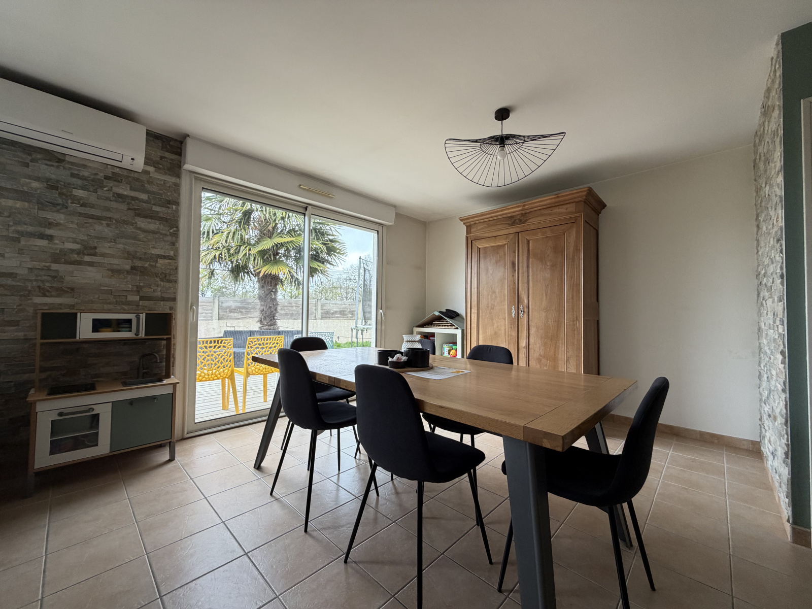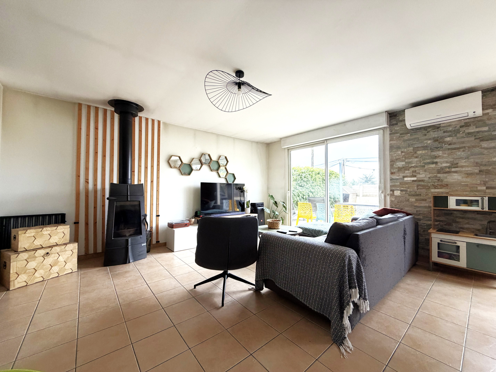 Chauffage : poêle à bois, clim réversible et radiateurs électriques dans les chambres.
