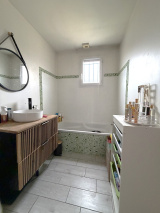 AIZENAY, à proximité des pistes cyclables, du centre-ville, découvrez cette maison de plain- pied de 2008 offrant une surface habitable de 130 m². Elle offre : une entrée avec grands rangements, un séjour-salon lumineux avec poêle à bois et sa cuisine ouverte aménagée et équipée (four, plaque induction et micro- onde), un dégagement avec placard, 4 chambres équipées de rangements dont une suite parentale avec dressing et salle d'eau privative et accès terrasse, une salle de bains, un wc, une lingerie. Garage indépendant de 30 m². Terrasse de 40 m² exposée sur/ ouest. Le terrain est clos et sans vis à vis.