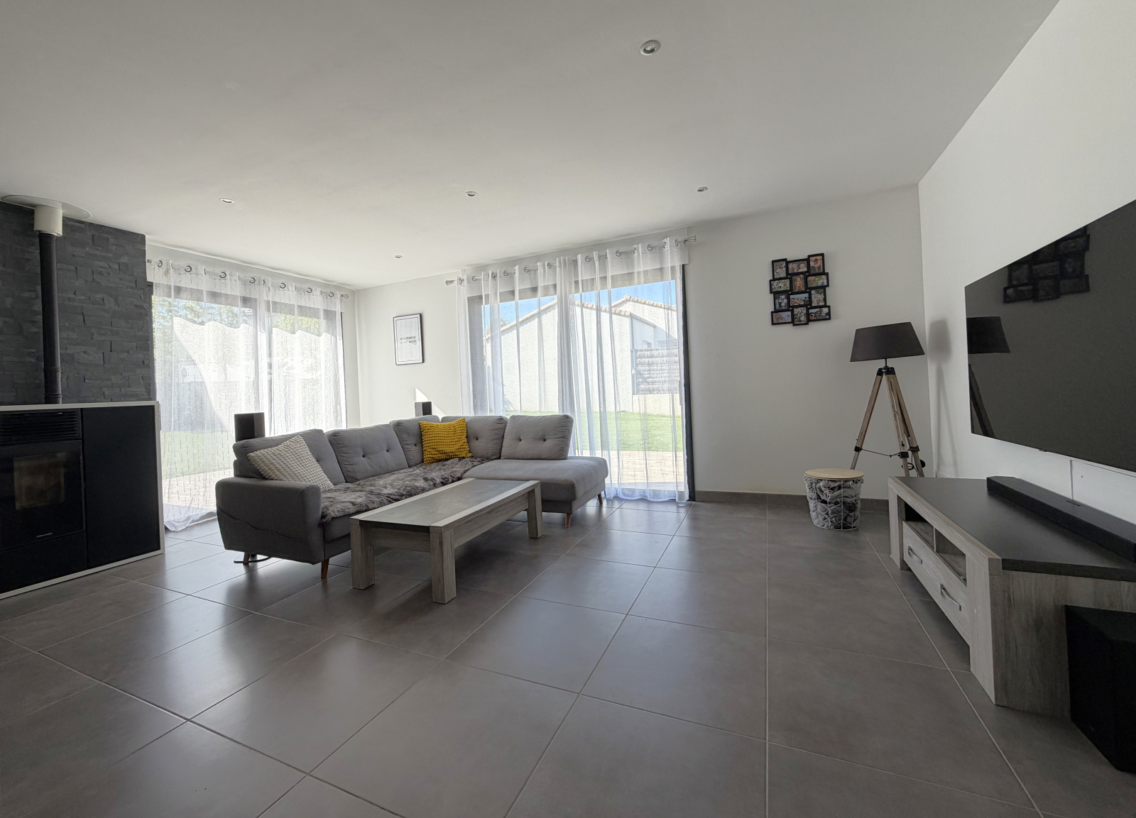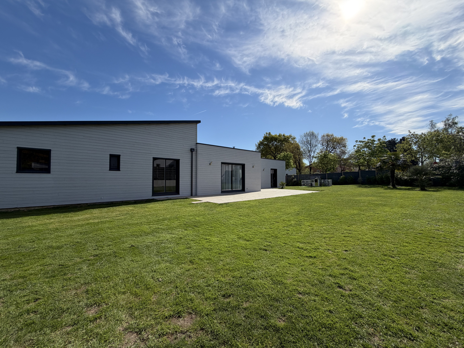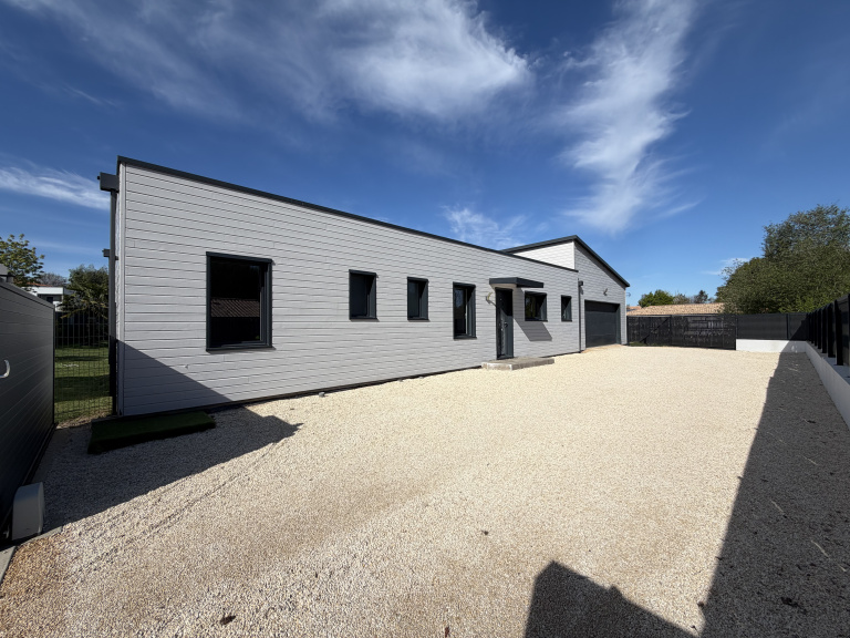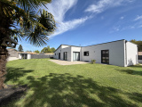 Située dans un quartier calme, en impasse, et sur un agréable terrain clos de 905 m², jolie maison de pl-pied de 2012, en ossature bois, offrant 130 m² habitable et un garage double attenant de 50 m².