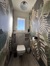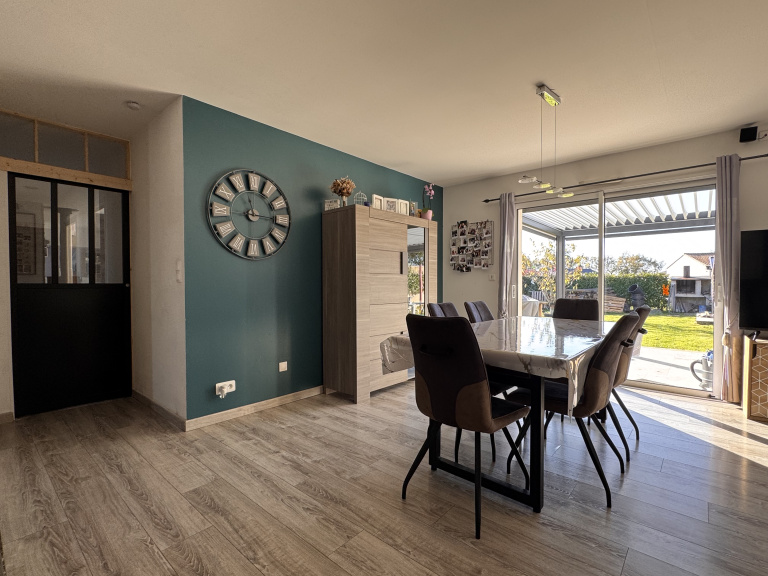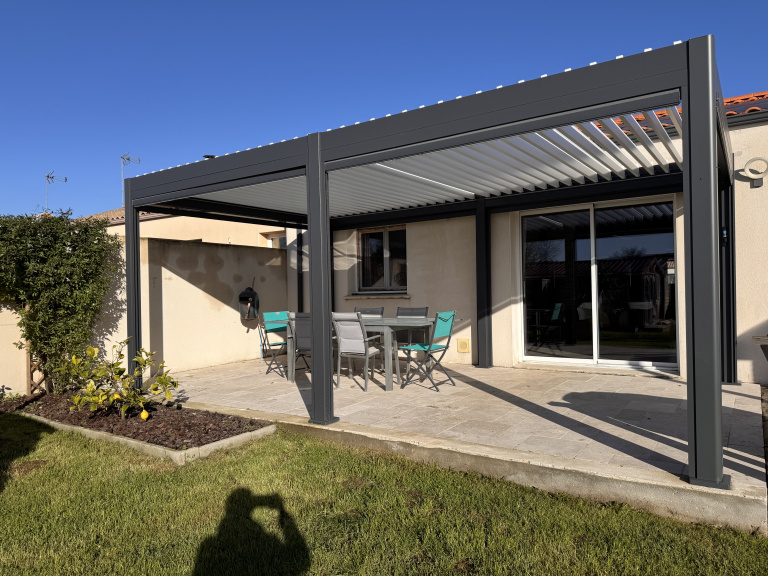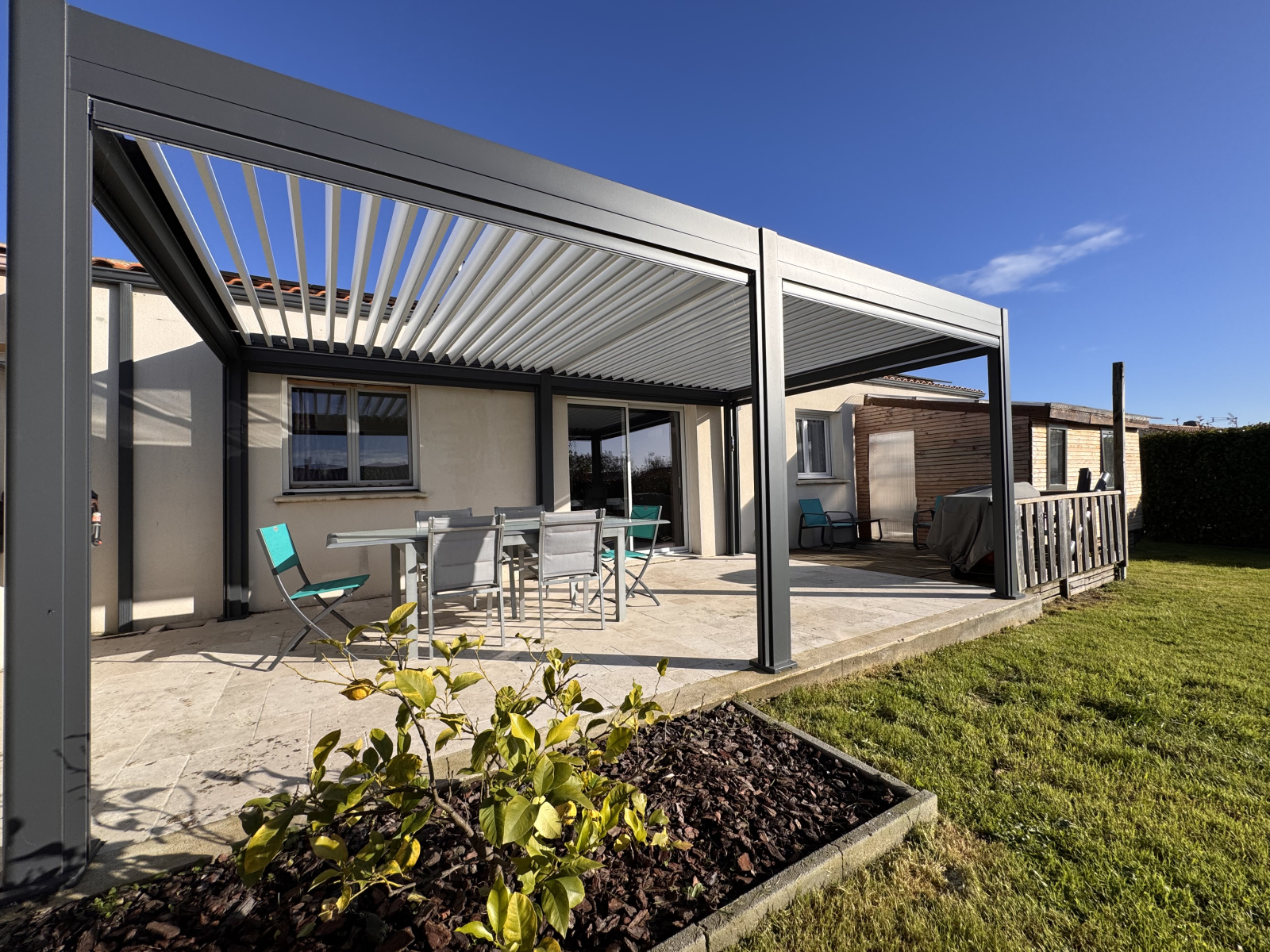 Beau terrain clos et sans vis-à-vis de 617 m². En façade, les accès et stationnements sont enrobés, et sur l'arrière vous profiterez d'une belle terrasse, orientée Sud/Ouest, carrelée et couverte d'une pergola bioclimatique (2025).