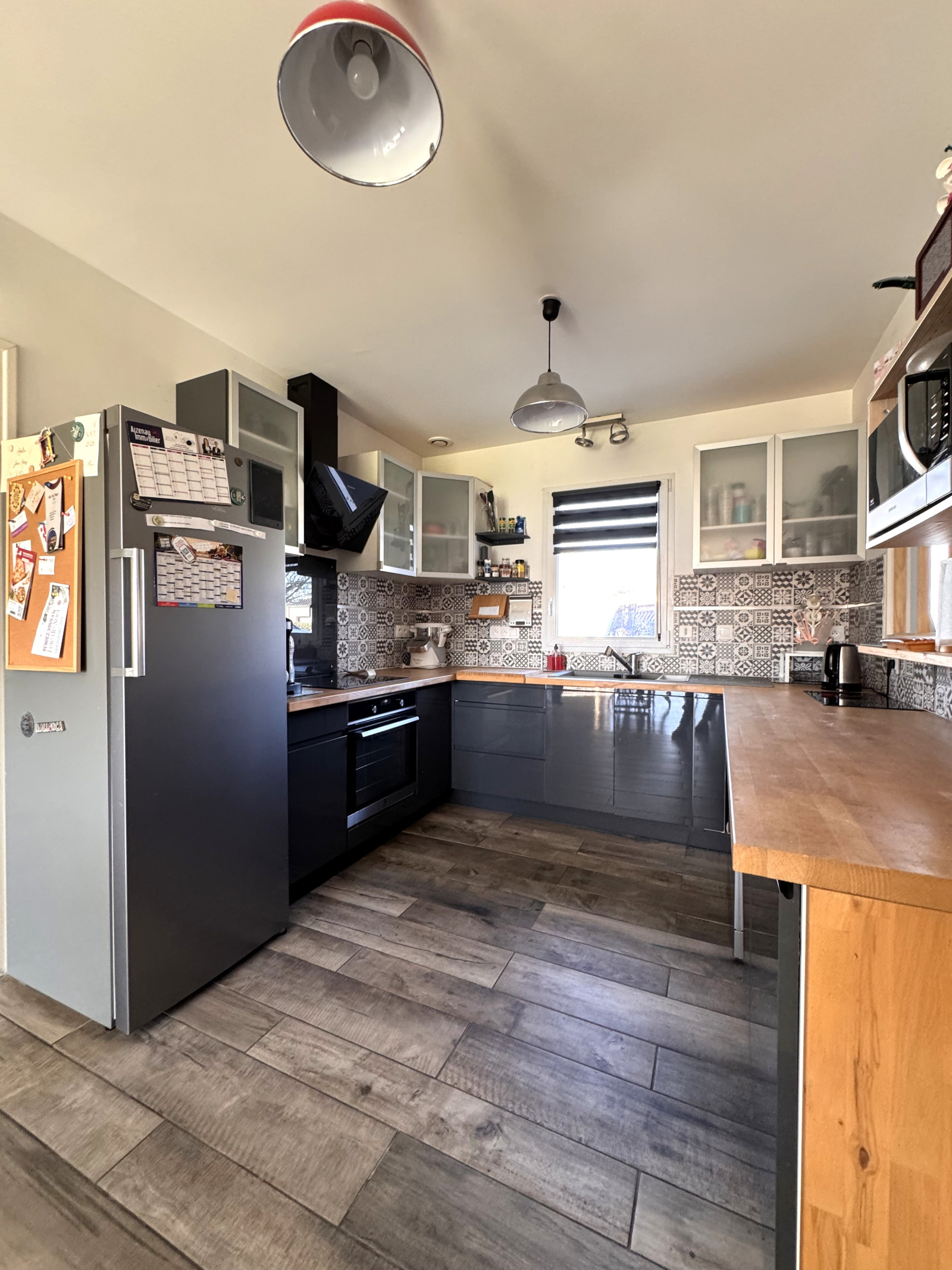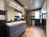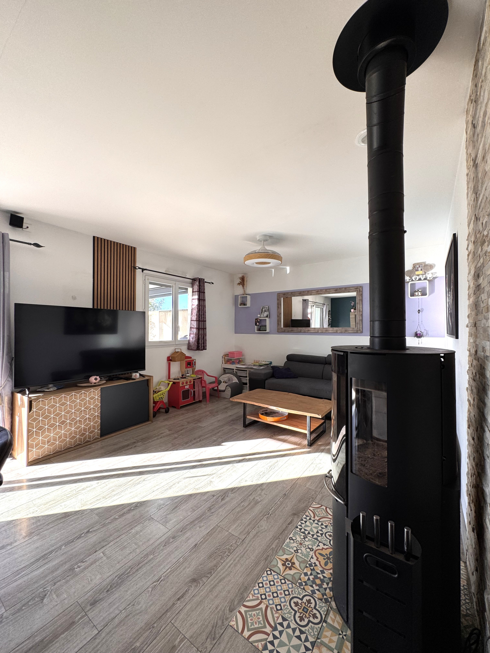 Cette maison comprend une entrée avec placard, une cuisine aménagée et équipée, un salon-séjour avec un poêle à bois mixte (bois et granulés), une lingerie (19 m²), un dégagement desservant un espace nuit composé de 3 chambres (toutes équipées de placards), un wc et une salle d'eau.
