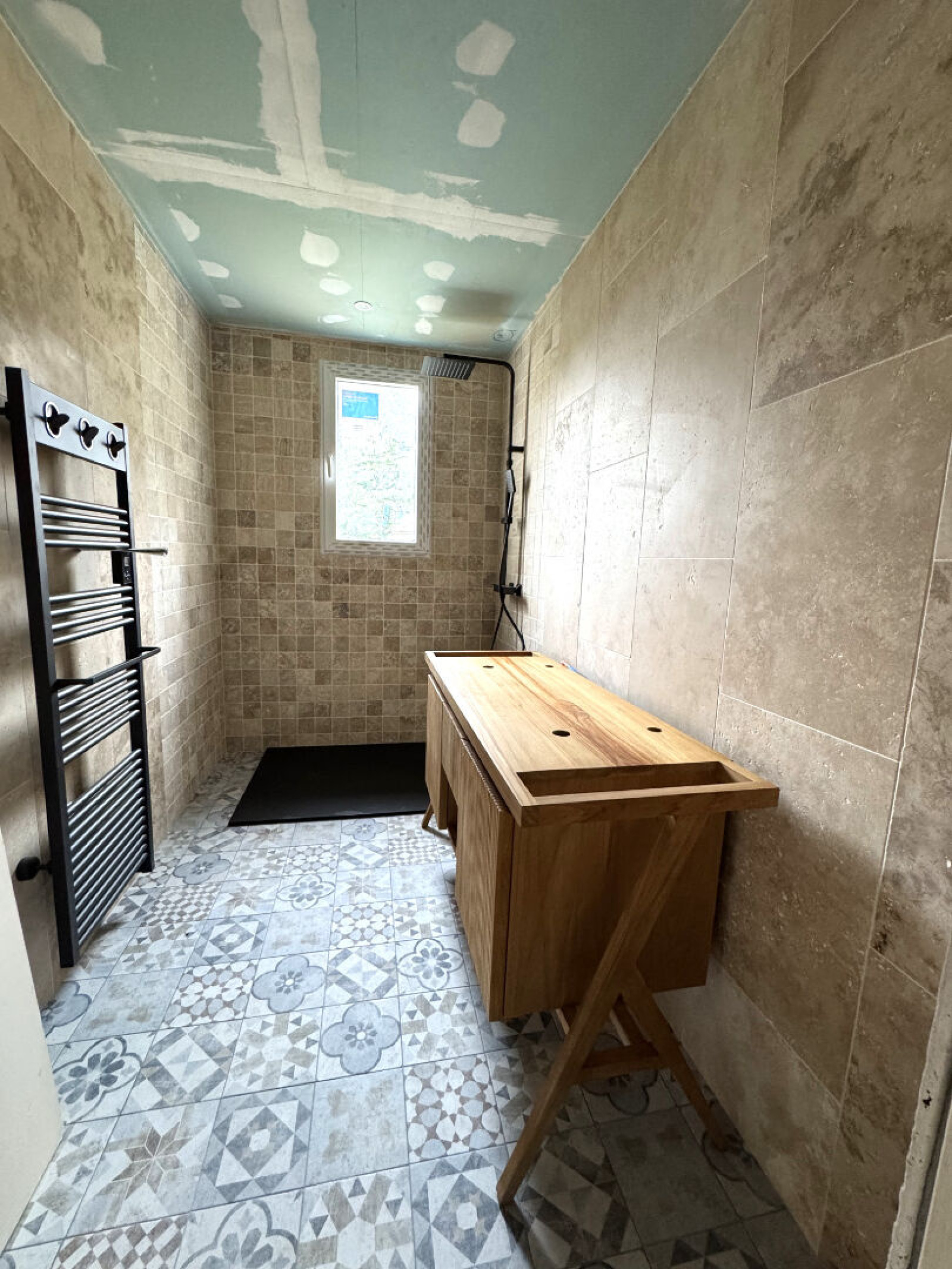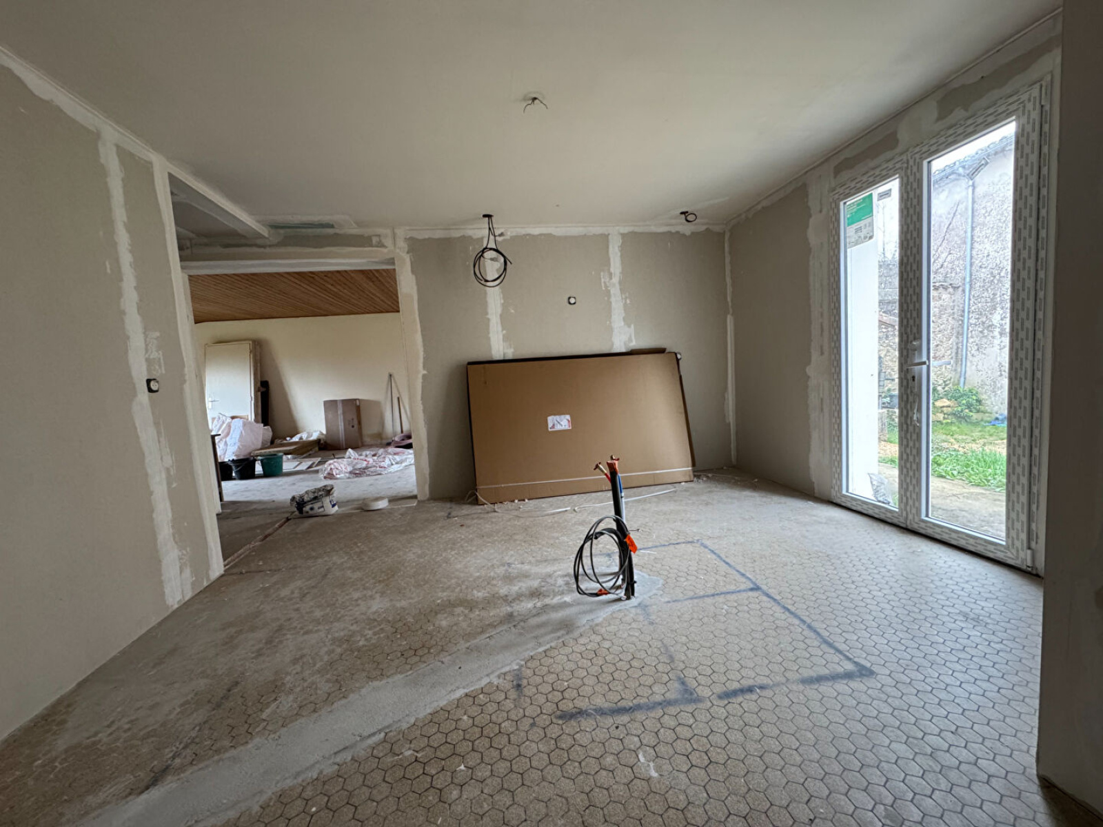 La 2ème : maison de plain-pied des années 70 entièrement refaite à neuf (ouvertures, électricité, plomberie, doublage et placo) comprenant une cuisine, un cellier, un séjour-salon, 3 chambres sur parquet massif, une salle d'eau, et wc (travaux de finition intérieure à prévoir : sols, peintures).