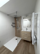 A l'étage, un palier avec un grand placard, 2 chambres dont une avec placard et une salle d'eau (rénovée en 2021).