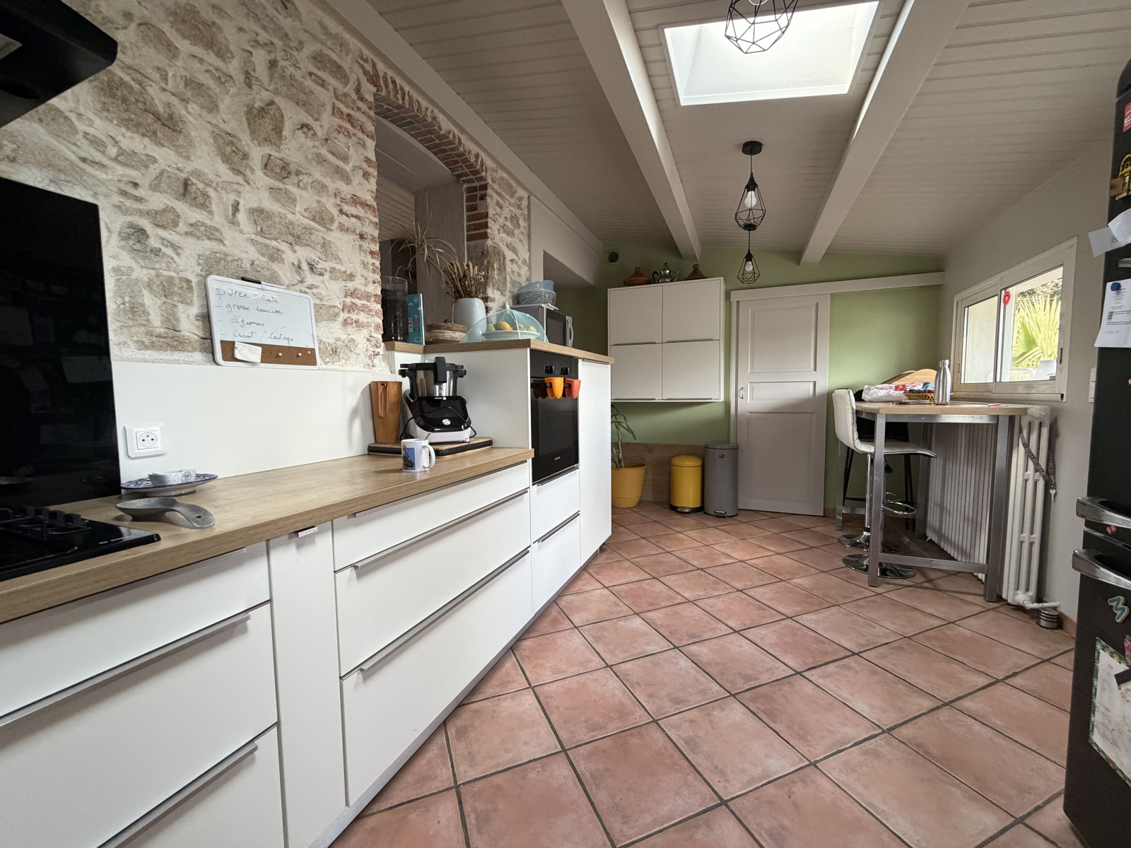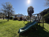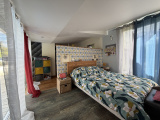 Elle offre: une entrée, un salon- séjour avec cheminée insert, une cuisine récente aménagée et équipée, un couloir desservant 4 chambres dont une suite parentale avec dressing et accès à la salle de bains (baignoire et douche) et un bureau ou salle de jeux, 2 wc, un cellier. Un grand bâtiment attenant de 120m² au sol avec grenier et pièce fermée de 65m² et double garage de 65 m² avec portails motorisés.